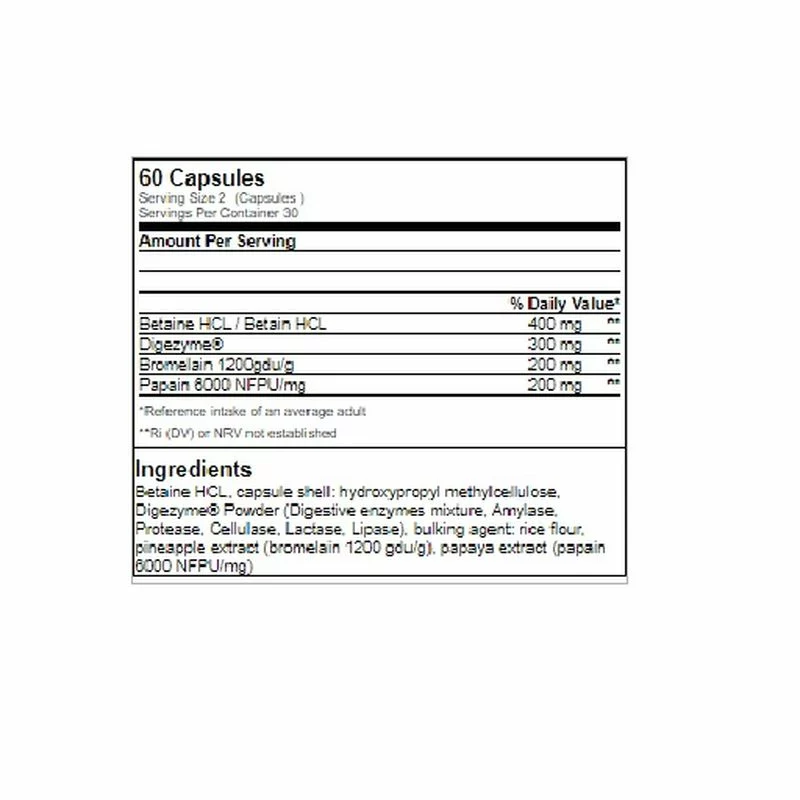 GN Digestive Enzymes enthalten eine Mischung von Enzymen, die in der Produktbeschreibung auf der Verpackung aufgeführt sind. Für detaillierte Informationen zu den Inhaltsstoffen wird empfohlen, die Verpackung oder die Webseite des Herstellers zu konsultieren.