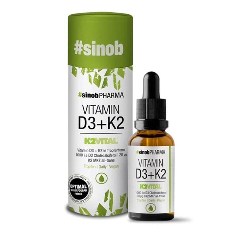 Sinob Vitamin D3 + K2 Tropfen 10ml – Vitamin D ist ein wichtiger Nährstoff für den Körper. Die Vitamin D3 + K2 Tropfen von #SINOB können dabei helfen, einen möglichen Mangel auszugleichen oder vorzubeugen. Jeder Tropfen enthält 1000 IE Vitamin D3, was den täglichen Bedarf abdeckt. Die Tropfen sind einfach dosierbar und können auch in Getränke gemischt werden.
